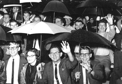 Written on the back, "We're with you team, come rain or shine." Photo taken during the 1960's.