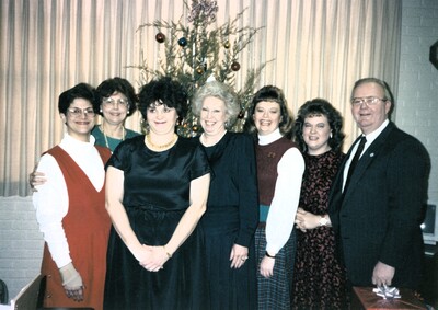 (L to R) Denise Duplechin, Pat Morse, Patricia Gallagher, Mary Saterfiel, Cindy Collier Taylor, Nancy Davis, and Dr. Charles McDonald. (Courtesy of Denise Duplechin).