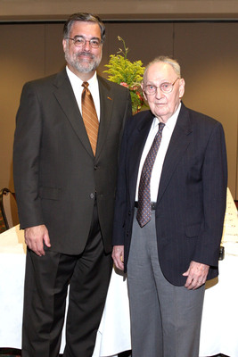(L to R) Current University president, James Cofer is pictured with former University president, George Walker.